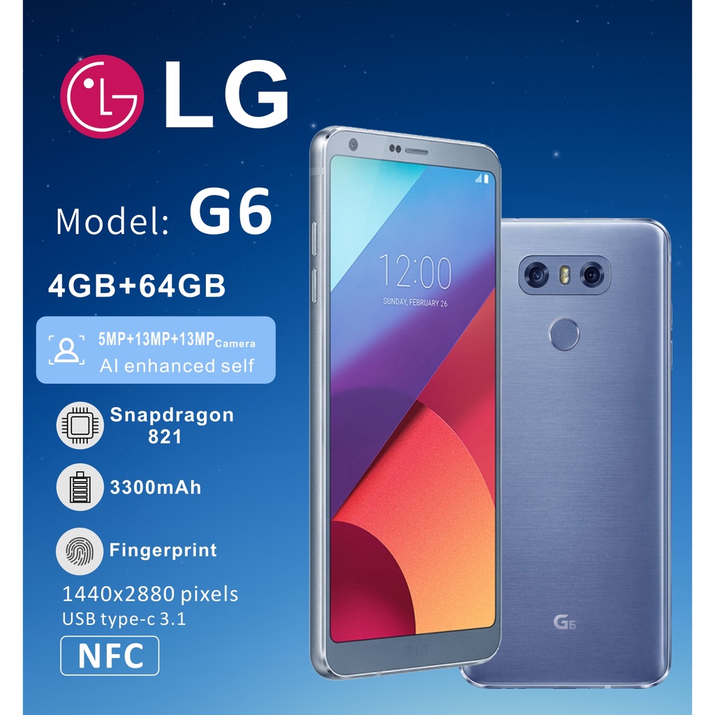 Jual (ori) Hp LG G6-NFC-13MP+13MP+5MP Type-c 4GB+64GB 5.7 Inci Hp